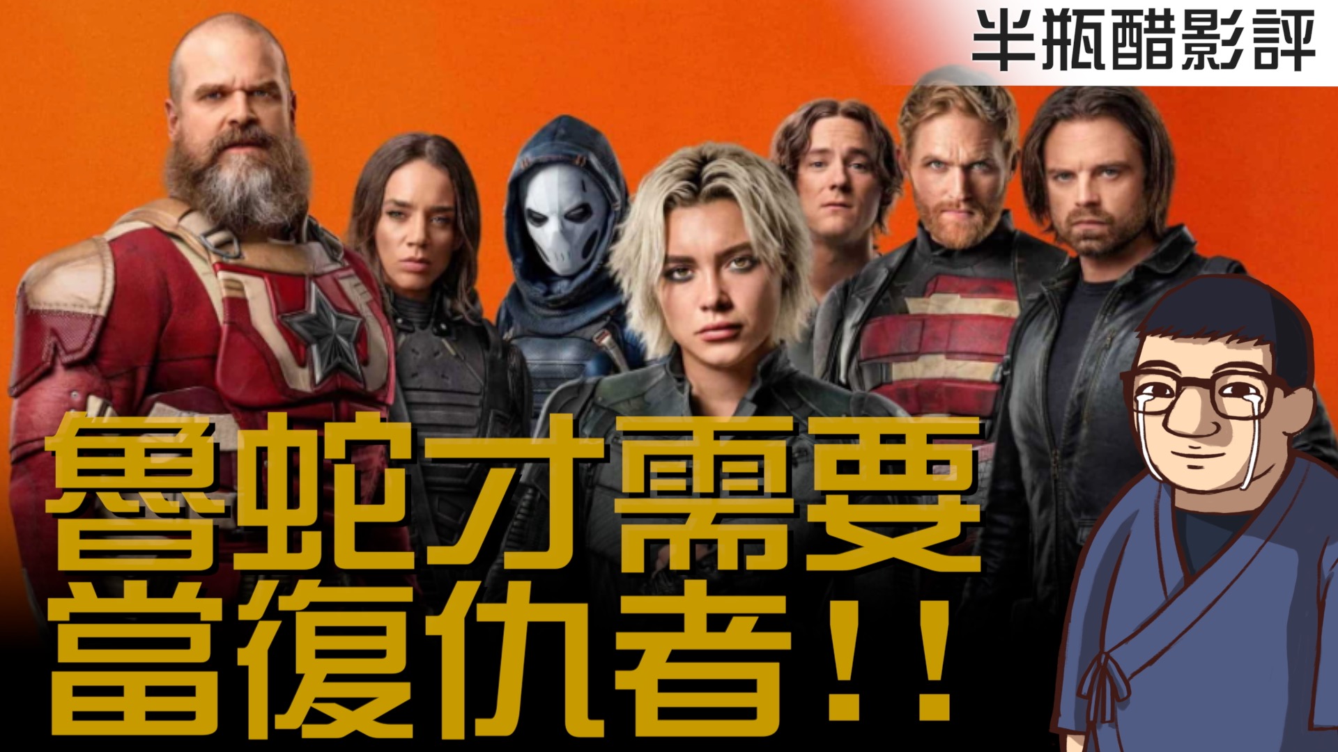 【雷霆特攻隊*】 當中的漫威世界相當憂鬱,這些角色們都是過往被擊敗的反派角色,明明有著超越常人的實力,卻有著不光彩的過去,想要被人肯定,被人看見,但是這個世界卻非常的殘酷,到了最後他們只能被擁有權力的人拿來當作工具使用。